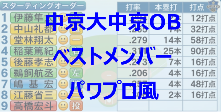 先ほど算出した中京大中京のベストメンバーを、お馴染みの「パワプロ風」スタメン画像に落とし込んでみました。