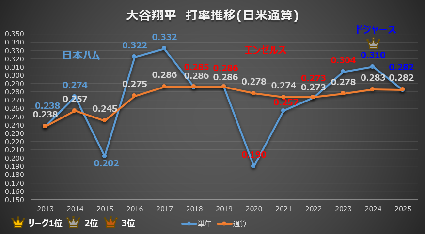 【大谷翔平】打撃成績推移シリーズ(2025年終了時)