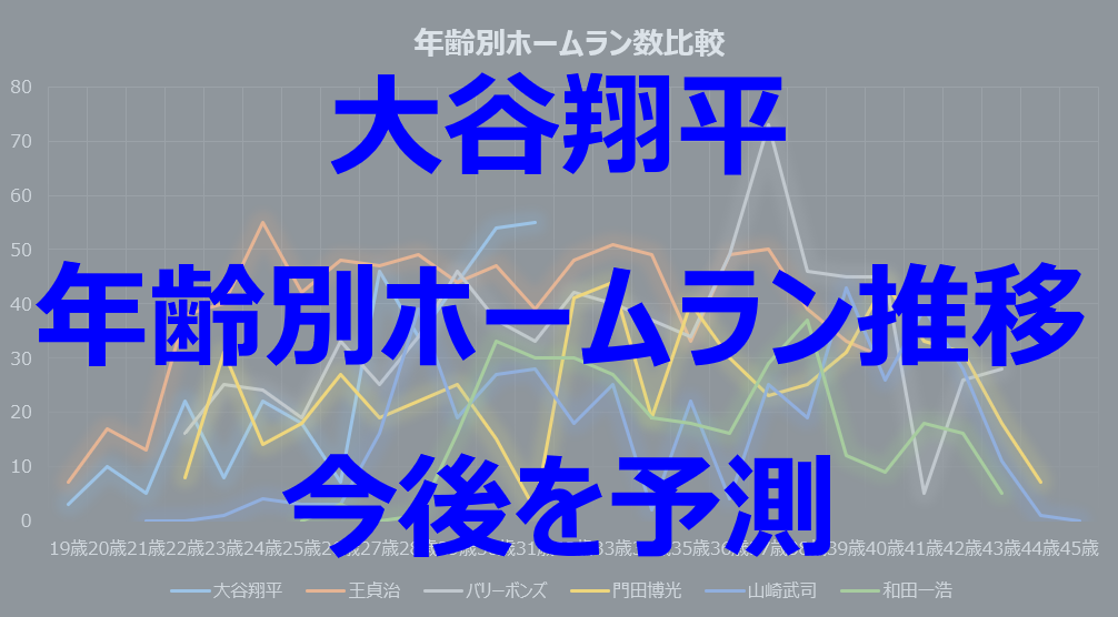 今回は、年齢を重ねてもなお圧倒的な輝きを放ち続けた、日米のレジェンド5選手(王貞治氏、バリー・ボンズ氏、門田博光氏、山﨑武司氏、和田一浩氏)の年齢別ホームラン数推移を徹底比較。データに基づき、大谷選手の未来をシミュレーションします。