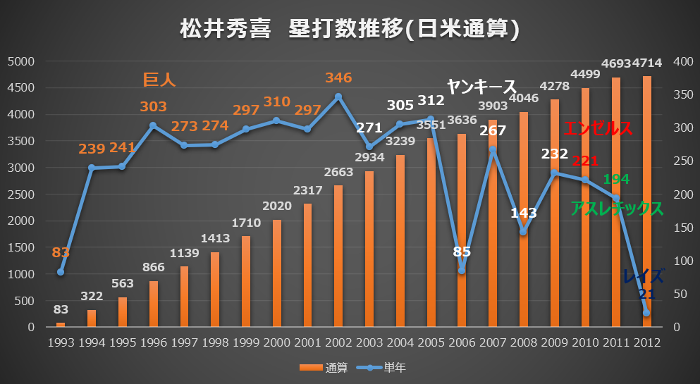 偉大なレジェンド、イチロー氏・松井秀喜氏との「塁打数」比較