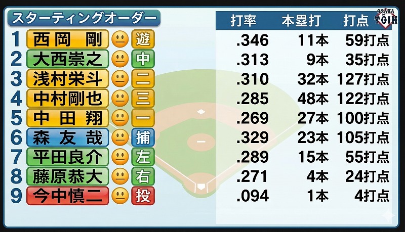 そして何より恐ろしいのは、打率.329・23本塁打・105打点を誇る森友哉選手が「6番」に座っているという事実です。下位打線に向かっても息を抜く場所がなく、相手投手にとってこれほど絶望的なオーダーはありません。
